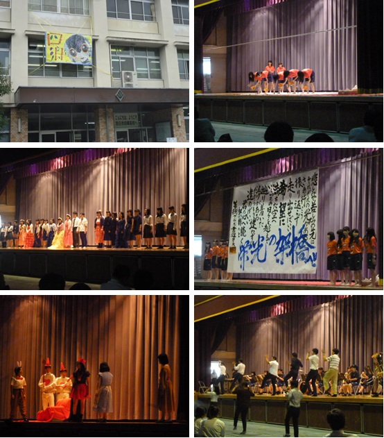 受付をすませた後、体育館に入り、まず、教頭先生のあいさつの後、生徒会オープニング、芸術クラス書道コースのパフォーマンス、音楽コースの発表、運劇部の発表、吹奏楽部の演奏と続きました。28日(金)は各教室等でクラス・PTA等の企画・展示・バザー等があるそうです。