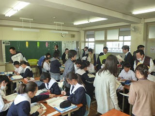 生徒は、多くの先生方に見守られた中、緊張した面持ちで学習に取り組んでいました。多くの目がある中での授業を受け、話し合い、発表した今日の経験が、今後の成長につながることを期待しています。