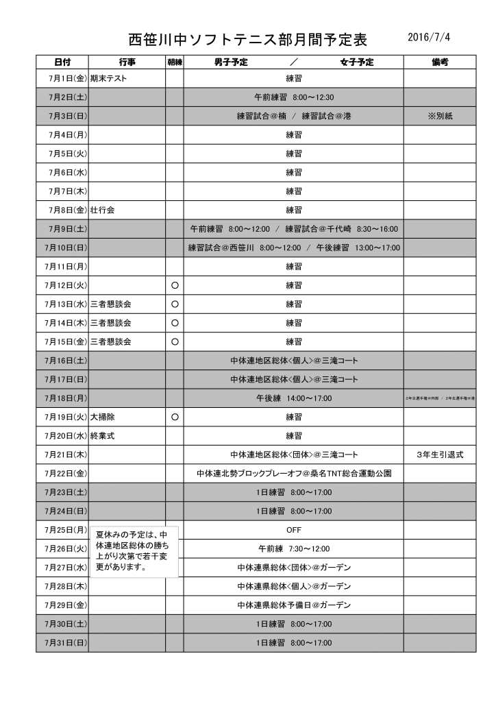 7月予定表