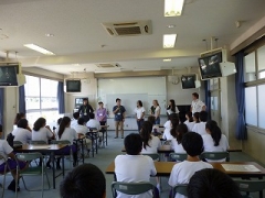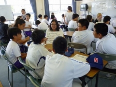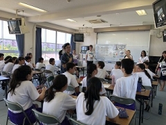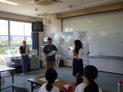 8月27日(月)、6名のYEF(四日市市英語指導員)の方々によるLet's enjoy Englishが行われ、27名の生徒が参加しました。今年は、生徒が各YEFに英語で質問した答えを手がかりに犯人を見つけるLet's enjoy English Mysteryというコミュニケーション活動が行われました。生徒たちはグループの人たちと協力しながら意欲的にYEFと対話をし、犯人を見つけることができました。
