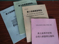 本日5,6限目は第2回進路説明会でした。私立・国公立の高等学校の受験(受検)方法等について話がありました。保護者の方には生徒の隣に座っていただき、一緒に話を聞いていただきました。また、ポルトガル語版やスペイン語版の資料を活用しながら、通訳の先生にも入っていただきました。 卒業まで、4か月を切りました。中学校を卒業した先の進路をしっかりと考えていきましょう。話にもありましたが、「受験(受検)は団体戦」です。クラス全体、学年全体で雰囲気づくりや体調管理を行っていきましょう。また、受験(受検)についての質問があれば、学年の先生にいつでも聞いてください。