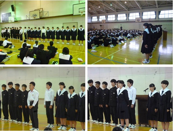 本日5日(月)の6限後に体育館で壮行会を行いました。下の写真がその様子です。