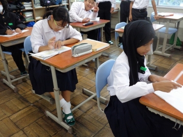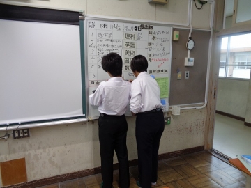 ホワイトボードに予定を記入する人、勉強する人、クラスメイトと楽しくおしゃべりする人。。。生徒のみなさん、それぞれの過ごし方を満喫中。