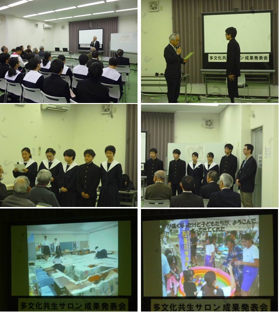 この中で、ジュニアサポーター養成講座に参加していた本校の多文化共生サークルの生徒がサークルの活動について発表し、その後、ジュニアサポーター養成講座修了証を授与していただきました。