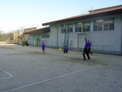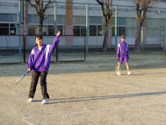 気温はそんなに低くないものの冷たい風が吹く中、大きな声を出して元気に練習中。