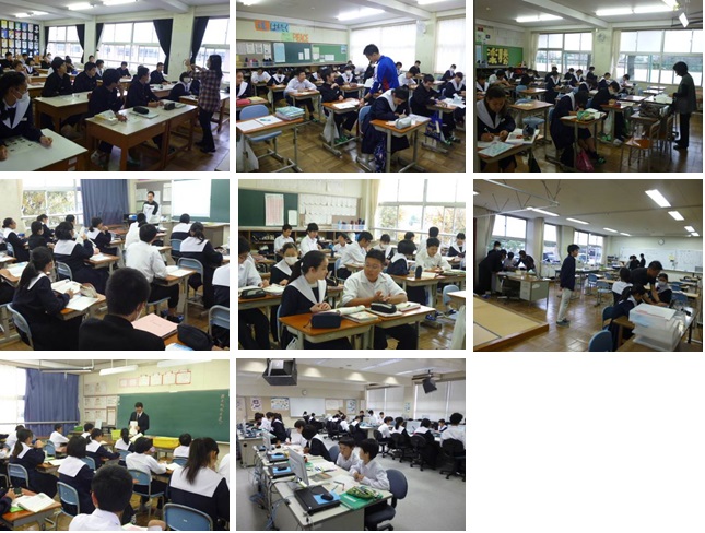 11月2日(金)の文化祭から約10日がたちました。校内には、文化祭の一部の展示も残っていますが、各教室では気分一新で教科授業に集中して取り組む生徒の姿があります。下の写真は本日12日(月)の6限目の各学年・学級の様子です。 3年生では、1組は美術科、2組は学活、3組は国語科の授業が行われていました(写真上段左・中・右)。 2年生では、1組は英語科、2組は国語科の授業が行われていました。ABC組では、生活単元の授業が行われていました(写真中段左・中・右)。 1年生では、1組は国語科、2組は理科の授業が行われていました(写真下段左・右)。 今月末には2学期末テストもあり、17日(土)にはテスト発表となります。どの学級でも生徒は気持ちを切り替え、落ち着いて真剣に授業に臨んでいました。