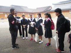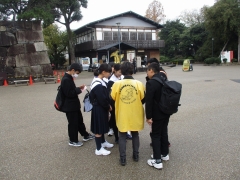 名古屋城にて質問中… ワークシート取り組み中…