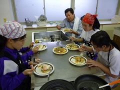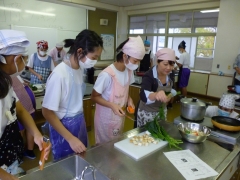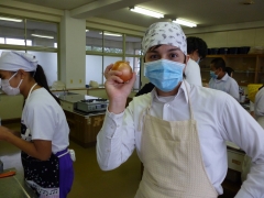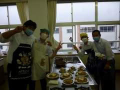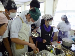 本日、期末テストが終わった午後、調理室にて多文化共生サークル主催行事の一環で、21名の生徒と数名の教員が参加して、