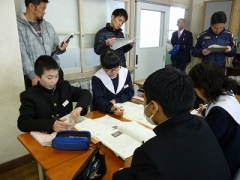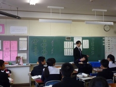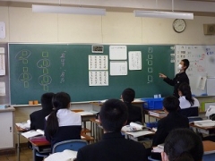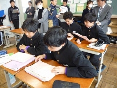 2月4日(月)、京都市教育委員会指導部学校指導課の大菅佐妃子先生をお招きし、2年1組で渡辺祥啓先生によるJSLカリキュラムにおける指導上の工夫をした国語科の研究授業が行われました。授業では、生徒が漢文の返り点「レ点と一・二点の意味」について小グループで交流しながら、理解を深めていました。公開授業後、教師が授業について小グループに分かれて授業について交流したり、日ごろの授業について振り返ったりしました。そして、最後に大菅先生より授業について指導講評をしていただいたり、JSLカリキュラムにおける指導をしていく上で考慮すべき点についてお話をしていただいたりしました。