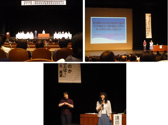 午前中には、桃山学院教育大学松久眞実教授の講演「発達障害のある児童生徒は、青年期をどう乗り越えるのか~社会性を育む支援とは~」と題する講演があり、午後からは第63回三重県特別支援教育研究会研究大会の分科会・情報交換会が開催されています。