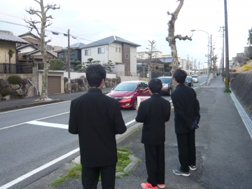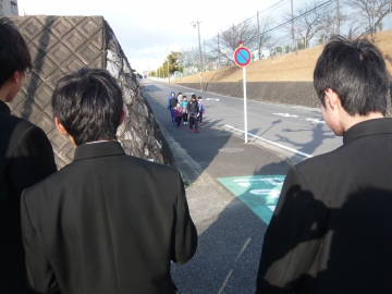 中学生への啓発ではなく、小学生や地域の方、車で通行されるドライバーにも明るく挨拶をし、交通安全を呼びかけました。