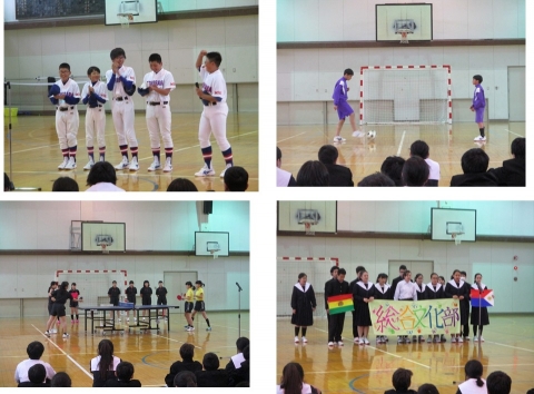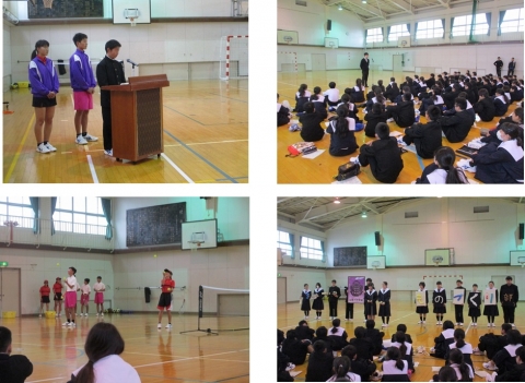 本日、1年生に向けた部活動の紹介がありました。それぞれの部活の活動内容や練習内容などを紹介してもらい、2・3年生の技に拍手もあがっていました。中学校での部活動は、小学生の頃には無かった新しい活動になります。自分自身を高められ、3年間続けることができる部活動を、お家の人とも相談しながら、よく考えて選択しましょう。どの部活の先輩も1年生の皆さんの入部を心待ちにしています。