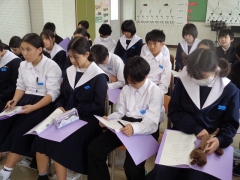 今日は教育アドバイザーの先生(元 中学校の校長)から、担当の先生に指導・助言をしていただきました。