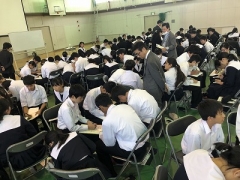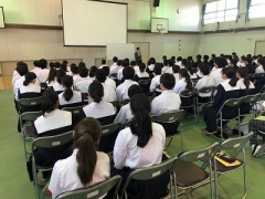 鈴木先生のを体験談を踏まえながら、グループ討議や発表をする中で、就職について考え、意見を交流することができました。いつかは誰もが働くことになります。将来を見据えたビジョンを持ってほしいと思います。
