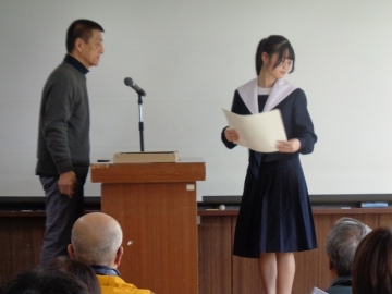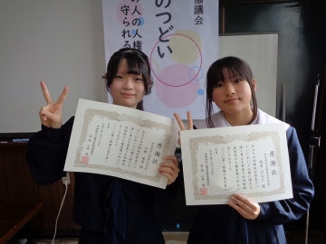 本校からは1年生女子&2年生女子の計2名が参加し、堂々とした態度で150点満点の素晴らしい発表でした。