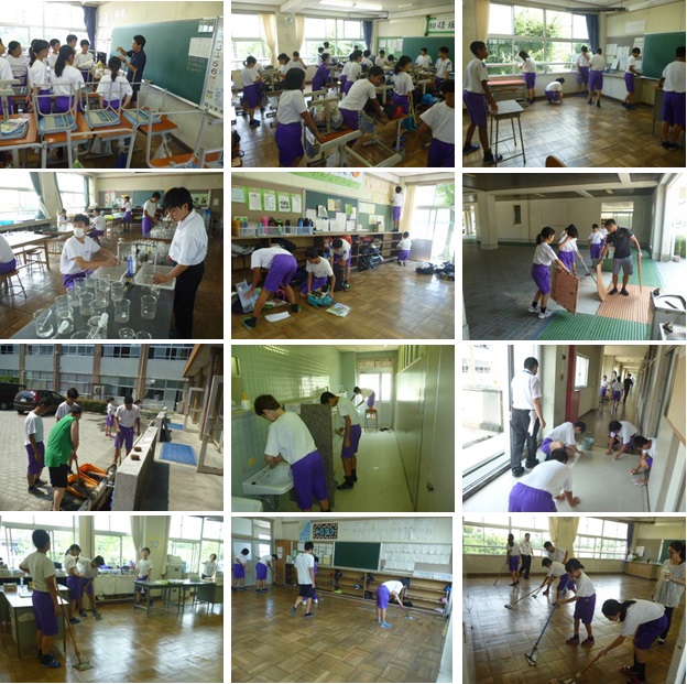 本日19日(木)の5限目、全校生徒で1学期末の大掃除を行いました。担任や担当の先生の指示を聞いた後、いつもの掃除よりも時間をかけ、ていねいに掃除をしました。