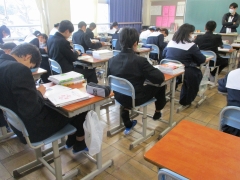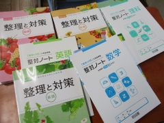 本日より、2年生の基礎学とマイノートが変わります。写真は6限目の「整理と対策」配布の様子です。5教科の問題と解答、ノートに名前を書き、説明を受けました。