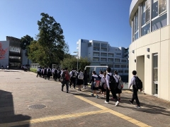 2年生は本日、三重県社会福祉協議会のご協力を得て「福祉の仕事・学びセミナー」を実施しました。バスで学校を出発後、日本福祉大学で、福祉についての講義受け、キャンパス見学を行いました。広々とした環境の中を歩く学生たちから、学びたいことを学んでいるという充実感を感じました。次に藤田医科大学及び大学病院を訪問しました。理学療法士・作業療法士についての講義を受けた後、最新のリハビリロボットや、医療現場の見学をしました。清潔かつ最新の施設を間近にして、驚きと発見の連続でした。