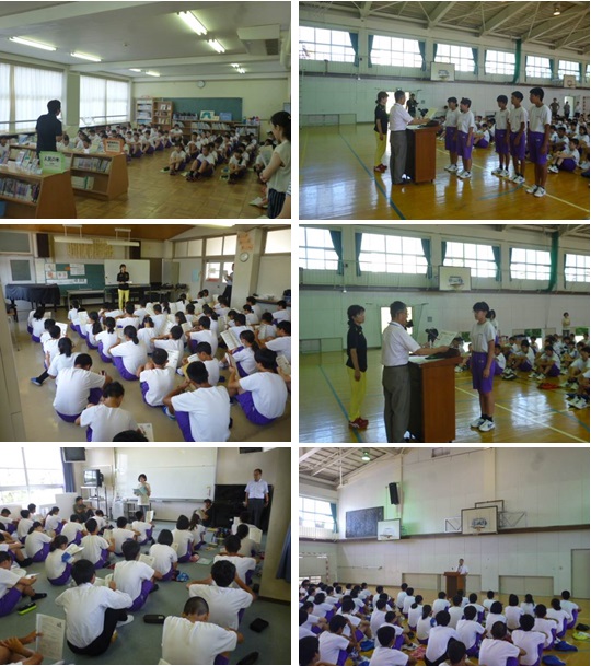 写真右側は2限目に全校生徒が体育館に集まって行った表彰伝達と1学期終業式の様子です。