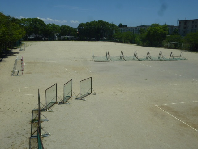 本日30日(水)は夏休みに入って10日目となります。 校内では、朝からソフトテニス部や卓球部が練習等に取り組んでいましたが、昼前で終了となり、午後には生徒の姿はありませんでした。 グラウンドでは、バックネットが台風12号の接近に備えて倒された状態となっています。本日は、台風も過ぎ去って気温も上がりましたが、風もあり、一時の猛暑ではない暑さとなっています。