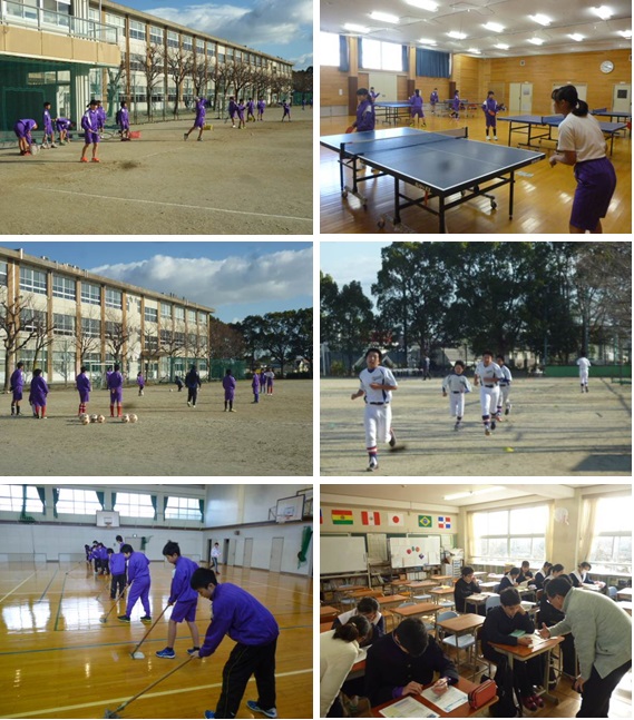 本日12月27日(木)、校内では午前中、ソフトテニス部、卓球部、サッカー部、野球部、総合文化部が練習・活動し、ハンドボール部、女子バスケットボール部が体育館の油引きをしてくれています。 学校は、明日12月28日(金)が休校日となり、翌日29日(土)から1月3日(木)まで年末年始の休日となります。新年は、1月4日(金)が休校日となるため、ほとんどの部活動は1月5日(土)から活動を再開する予定です。今年1年、本当にありがとうございました。また、来年もよろしくお願いします。