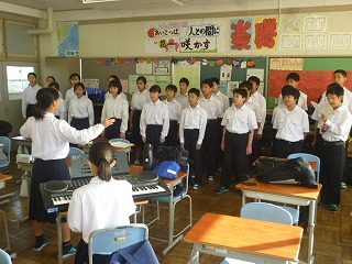 パート別の練習をしているクラス、はじめから全員で歌い始めるクラス、パート別の後に全員で合わせるクラス、練習スタイルはまちまちですが、みんな一生懸命に頑張っていました。