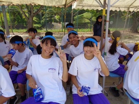 生徒のみなさんはとびっきりの笑顔で元気150%。