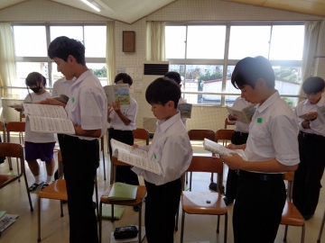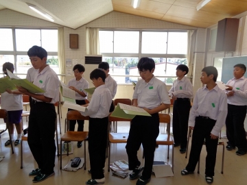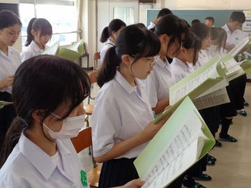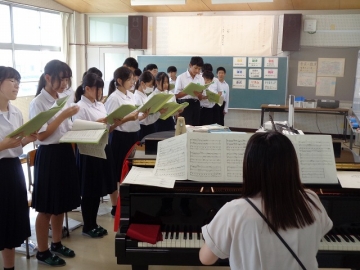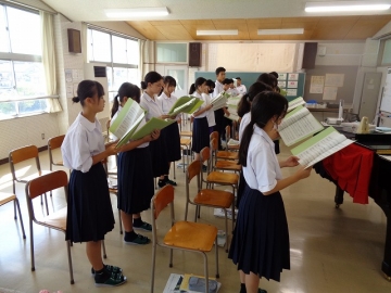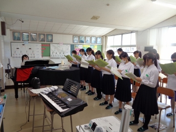 男子の一部のみなさんは、声変わりの時期のため少し歌いにくそうですが、心がこもっていれば大丈夫。