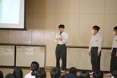 本日の還流報告会は、大池中学校生徒会が大切にしている取り組みです。今年度は生徒会役員と一緒になって有志ボランティアメンバーも全校生徒のみなさんにむけて、交流会の報告を分かりやすく可視化した資料をもとに発表をしてくれました。きっと今日の報告会を受けて、「来年度は自分も参加してみたい!」と思ってくれる仲間も絶対にいたと思います。それだけ、心のこもった報告会であったと思います。