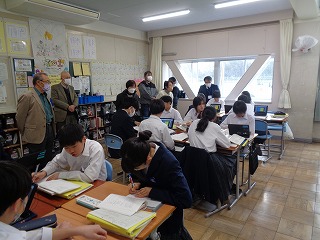①5限目の全校の授業の様子を見ていただきました(学級閉鎖のクラスは除く)。子どもたちが仲間とともに一生懸命に授業に打ちこんでいる様子がしっかりと伝わってきました。