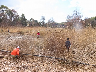 参加された皆さんの中には、大池中学校の保護者のみなさんも参加していただいていました。校長も参加させてもらいました。とっても寒い日になりましたが、湿地一面の草を刈っている(草刈り機にて)と大汗が出るくらいでした。運動不足解消にもよかったです。そして、少しでも貴重な植物の生息を守る活動に貢献できた達成感もありました。