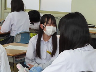 授業を通して、「差別をなくしていく行動についても考え、仲間とともに意見交流が活発に行われました」。