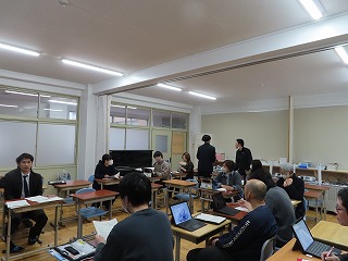 2年5組の提案授業のあとは、教員だけの事後研修会を実施しました。指導主事に授業の内容や様子を振り返ってもらいながら、子どもたちが授業にあたたかい雰囲気の中で、どの学習班もみんなで意見を出し合える雰囲気や様子をほめていただきました。