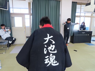 写真でもわかるように、最高のパフォーマンスを全員の力で見せてくれました!法被もおそろいの「大池魂」がバックプリントされていてとってもカッコいいです!振り付けも時間をかけて練習してきたことがよくわかります。力強く、元気で、明るく、そして大人の雰囲気も感じられるカッコよさがいっぱいでした!