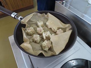 (2年2組)家庭科「調理実習」。班で協力して美味しい焼売の完成です!