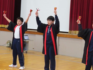 子どもたちの写真が表しているように、大池中学校の子どもたちは、一人一人が係の仕事も、パフォーマンス発表も、司会進行も、すべてにおいて、小学校の後輩となる子どもたちに見本となり、お手本となる素晴らしい取り組みであり、すばらしい行動力と実行力、そして1年間の成長をいかんなく発揮してくれたすばらいい時間となりました!