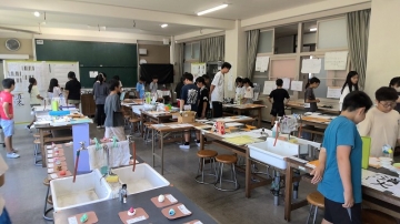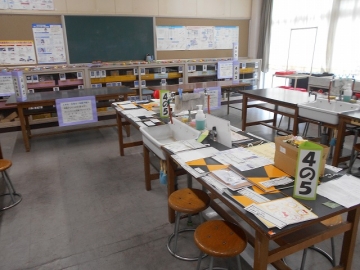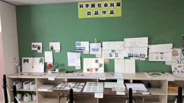 三泗小中科学展・社会科展に出品した作品を中央昇降口付近の掲示板で展示しています。