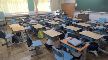 想定は震度6強の地震です。強い揺れが長い時間続いた上で、地震が収まった後、運動場へ避難するというものでした。