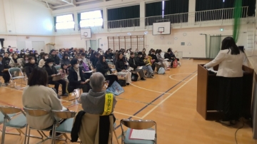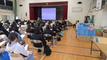 説明会には多くの保護者の方に集まっていただき、学校での過ごし方、健康な生活の送り方、入学式の日程などについての話をしました。