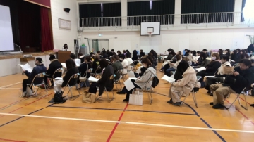 会場には羽津小学校、羽津北小学校、羽津中学校、海蔵小学校、山手中学校、橋北小学校と本校の7校の児童生徒、保護者が集まりました。体育館には多くの人が集まっていて、たんぽぽ学級の子どもたちは緊張していました。