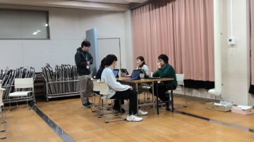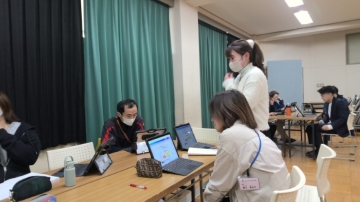 説明会の準備では、山手中学校から職業体験に来た生徒のみんさんに協力をいただきました。