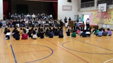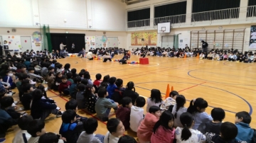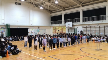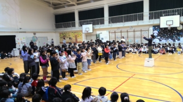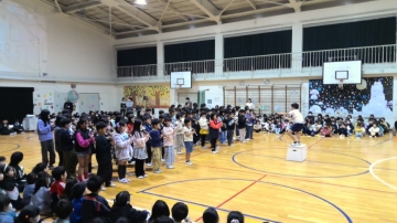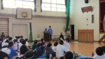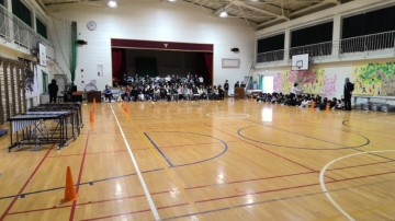 予定の9:30に、全校が体育館に集合して会は始まりました。
