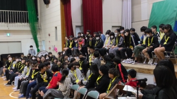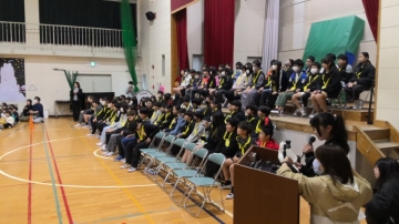 その後、6年児童会役員から5年児童会役員へ校旗が渡され、「5年生は4月から最高学年として頑張ってほしい!」というエールが送られました。