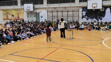 各学年の出し物が終わると、5年司会者による6年生へ突撃の感想インタビューがあり、会場内を楽しませてくれました。