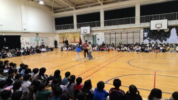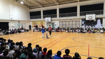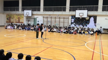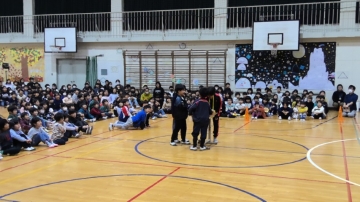 大勢の観客を見て緊張しそうですが、子どもたちはここでも真剣に取り組んでいました。これまで休み時間にも挑戦してきた技の披露であり、スムーズに技を決めていました。