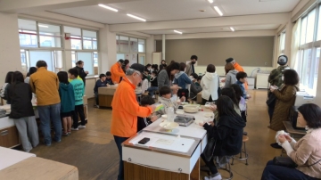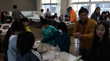 4年生はNPO法人みえ減災啓発支援ネットによる防災学習を行いました。家庭科室では実際に土鍋による炊き出し体験も行われました。