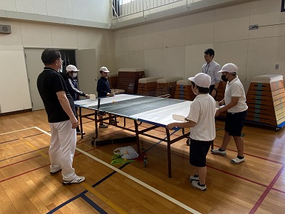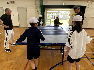 卓球台の上で音の出るボールを転がして打ち合うスポーツです。