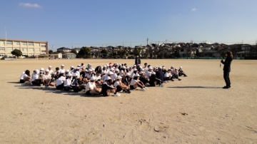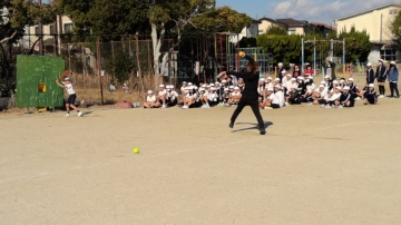 山根選手からはこの後、先生として、経歴の紹介、現在の仕事、投球披露、投球練習、バッティング対決などの指導をしてもらいました。