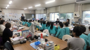 次に、授業をしていた5年生の教室に訪問しました。5年生から「よろしくね!」と元気なあいさつを受けて、入学することを一層意識できたようです。