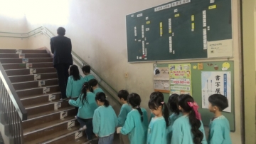 まずは、校舎内の学校探検をしました。